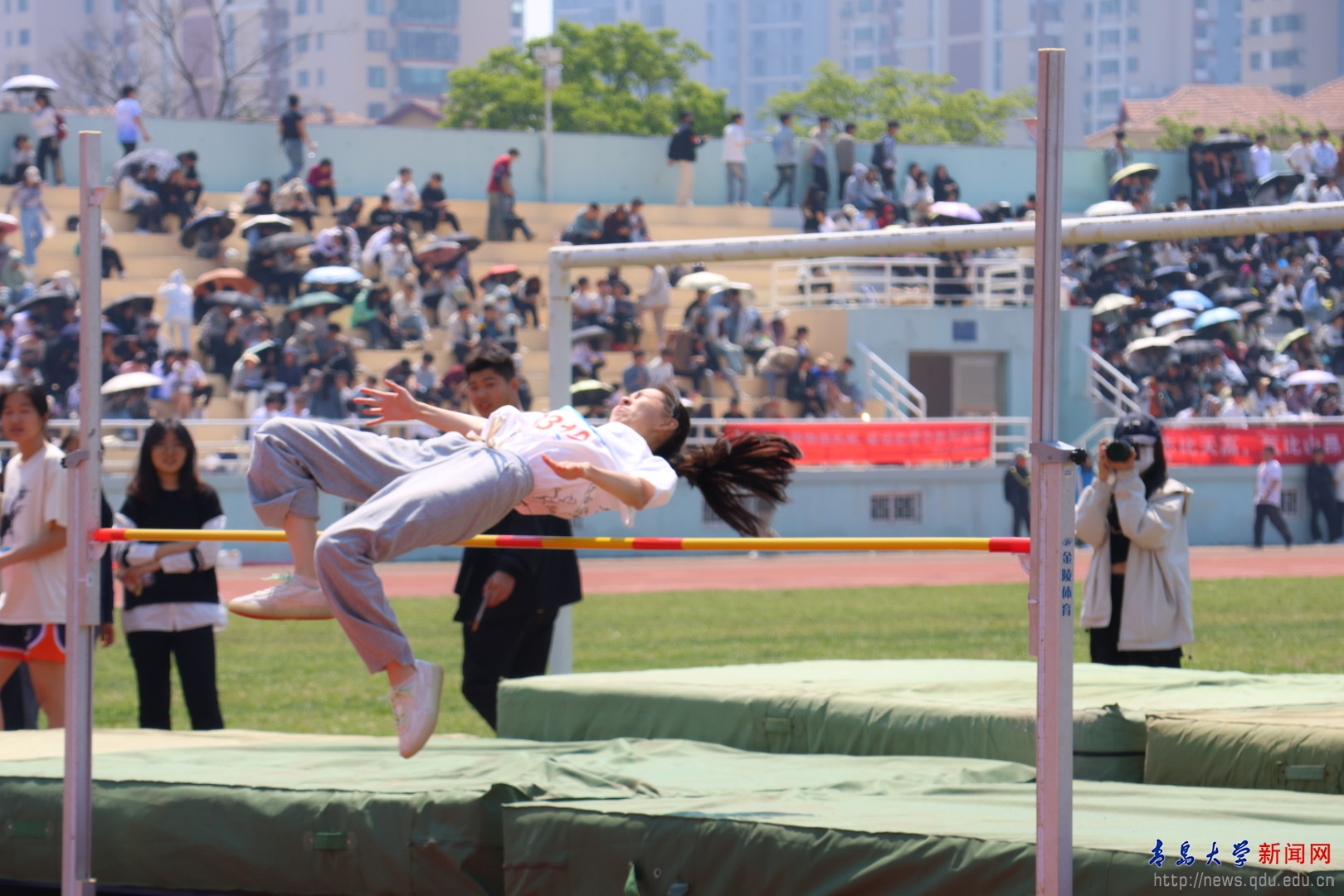 新聞網訊 5月9日上午,青島大學2024年體育運動會在浮山校區中心體育場開幕,校領導胡金焱、魏志強、肖江南、胡欽曉、陳濤、李榮貴、劉恩賢、何燕、徐大連、李建波、牛海濤、吳世珍出席開幕式。各職能部門、各院系師生代表在主席臺和觀禮臺觀看開幕式。