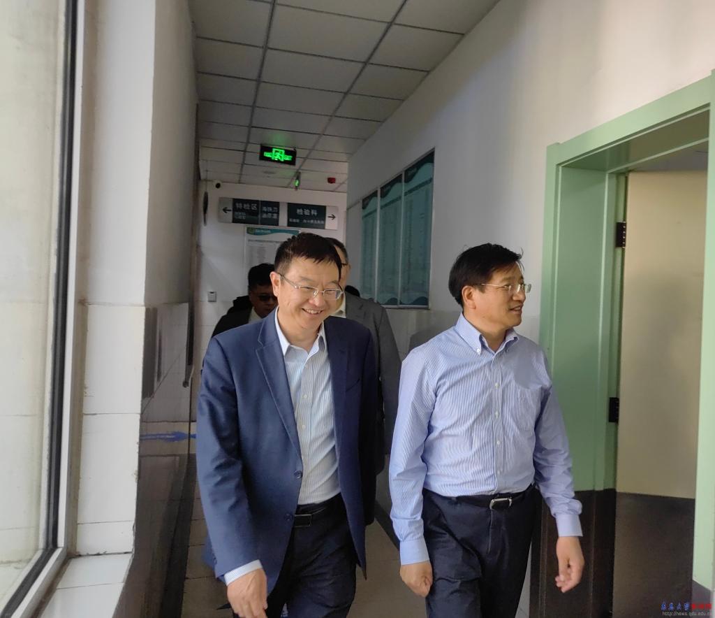 魏志強(qiáng)還調(diào)研考察了學(xué)校附屬醫(yī)院,在聽取附屬醫(yī)院黨委書記蔣光峰關(guān)于附屬醫(yī)院發(fā)展情況匯報(bào)后,他指出,附屬醫(yī)院確實(shí)與想象中的一樣,繼承發(fā)揚(yáng)了青醫(yī)的優(yōu)良傳統(tǒng)、聲譽(yù)和風(fēng)范,在門診量、手術(shù)量、全國公立醫(yī)院考核等指標(biāo)中,特別在器官移植、達(dá)芬奇機(jī)器人手術(shù)、互聯(lián)網(wǎng)醫(yī)療等方面,形成了自己的優(yōu)勢(shì)和特色,走在全國同類醫(yī)院的前列。廣大醫(yī)護(hù)人員用自己的辛勤付出維護(hù)著青大醫(yī)學(xué)的聲譽(yù),守護(hù)著人民的生命健康,他向?yàn)榍噌t(yī)發(fā)展做出無私貢獻(xiàn)的每一位青醫(yī)人表示衷心的感謝和誠摯的敬意。