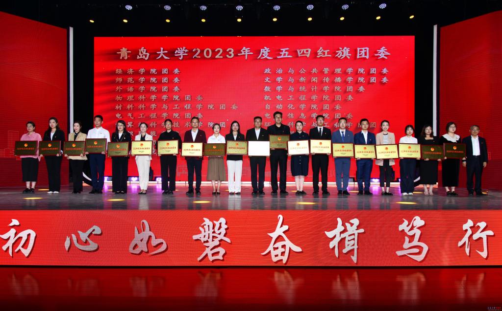 新聞網訊 5月16日下午,青島大學2023年度學團工作表彰會在青大劇院隆重舉行,校領導胡金焱、魏志強、肖江南、胡欽曉、陳濤、李榮貴、劉恩賢、何燕、徐大連出席表彰會并頒獎。