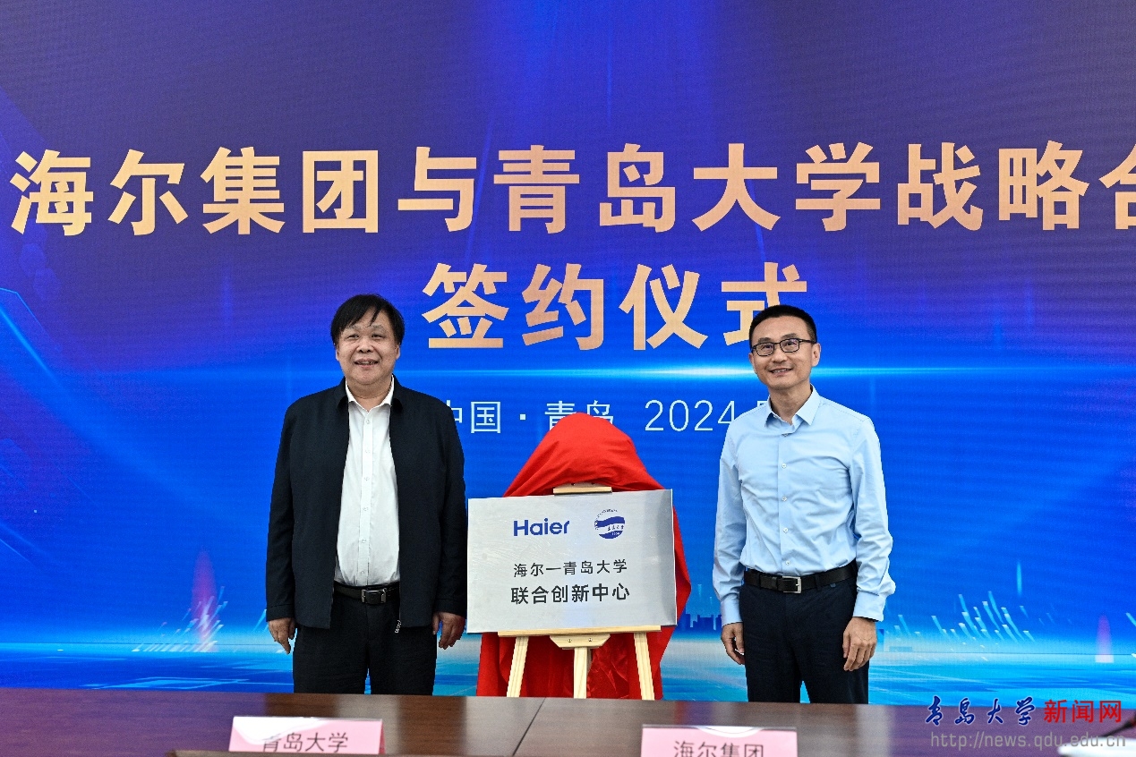會上,在胡金焱、魏志強、李榮貴、周云杰、梁海山、譚麗霞的見證下,劉恩賢與張玉波簽署雙方戰略合作協議。李榮貴與海爾集團科學與技術委員會執行主任王曄為“海爾-青大聯合創新中心”揭牌,青島大學創新創業學院常務副院長王海榮和海創匯董事長劉長文為“海爾-青大創新創業教育實踐基地”揭牌。同時,海爾聯合創新中心“揭榜掛帥”項目發布,我校6位學者揭榜“高溫熱泵”“腫瘤類器官精準藥篩治療”“細胞房空氣微生物檢測與智慧化”“適老化智慧老年內在功能評估干預及慢病管理”“面向產業鏈協作的全局協同動態優化及智能推薦關鍵技術與系統”“自動色彩檢測工具系統”6個項目。