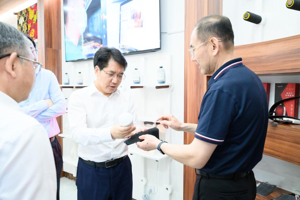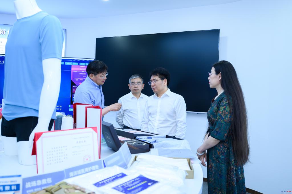 在產業技術研究院和生態紡織省部共建協同創新中心,鄧云鋒認真聽取了學校科技創新和成果轉化有關情況匯報,觀看了部分實物展品、現場演示,與學校相關科研人員進行了交流,對學校在海洋纖維新材料、鹽堿地治理、固態電池、人造血管、人工智能等領域取得的突破性進展予以充分肯定。鄧云鋒強調,青島大學要深化校地校企合作,進一步梳理紡織工程、生命健康、新能源新材料、新一代信息技術等優勢學科服務產業發展的融合鏈條,提升學校創新資源服務社會經濟發展的驅動力,在服務支撐山東經濟社會高質量發展中貢獻青大力量。