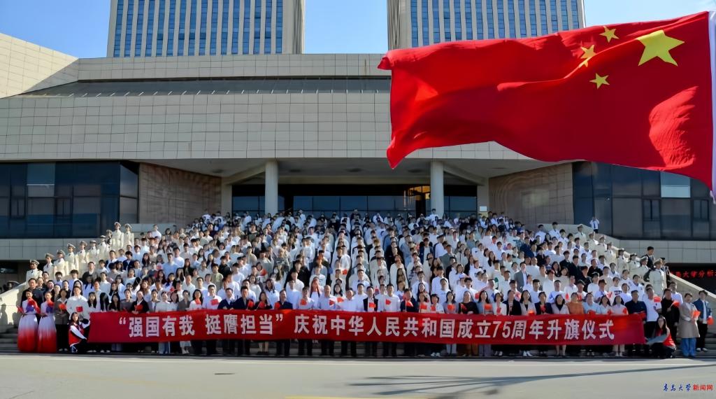 10月1日上午,我校在浮山校區和金家嶺校區同時舉行“強國有我 挺膺擔當”慶祝中華人民共和國成立75周年升國旗儀式。伴隨著雄壯的國歌,五星紅旗冉冉升起,迎風飄揚。在鮮艷的國旗下,青年學生代表通過主題朗誦以青春的名義,向祖國獻禮,全體學生立下了“強國有我 挺膺擔當”的青春誓言并合唱《我愛你中國》。