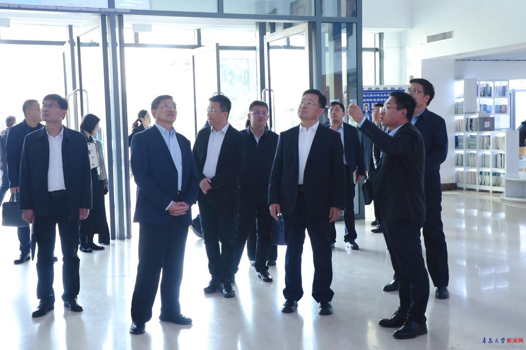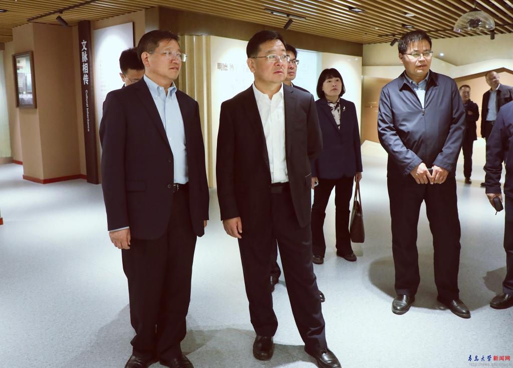 程德智一行先后到我校智慧校園與信息化建設中心、數字醫學與計算機輔助手術研究院,實地察看平安高校建設情況,聽取學校在人才培養、學科建設、科技創新等方面情況介紹,對青島大學教育教學、學術研究及平安建設的成效給予充分肯定。