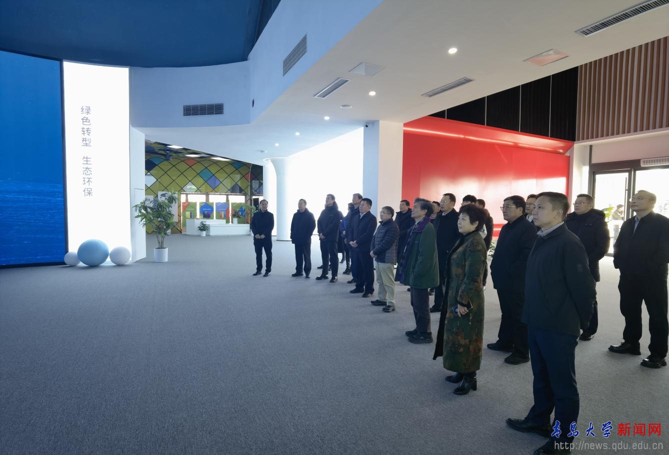 在臨沂大學黨委書記王煥良陪同下,胡金焱一行分別參觀了國家革命文物協同研究中心、沂蒙精神研究成果展,再生醫學創新研究院和鑫海新能源材料研究院。