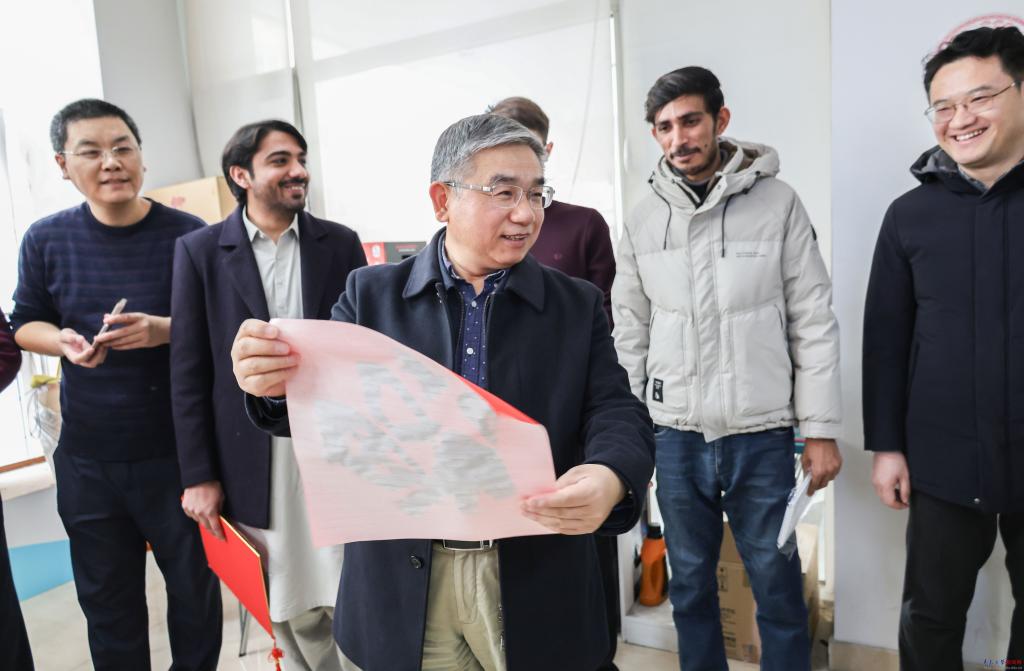 胡金焱一行到國際教育學院看望寒假留校留學生,與留學生親切交談,十分關切地詢問在校學習和生活情況,并著重強調做好寒假期間留學生的日常管理和服務保障工作。胡金焱對留學生予以鼓勵和期望,希望各位留學生能夠刻苦鉆研專業知識,深入學習中國傳統文化,努力成為中外文化交流的傳播者和踐行者。