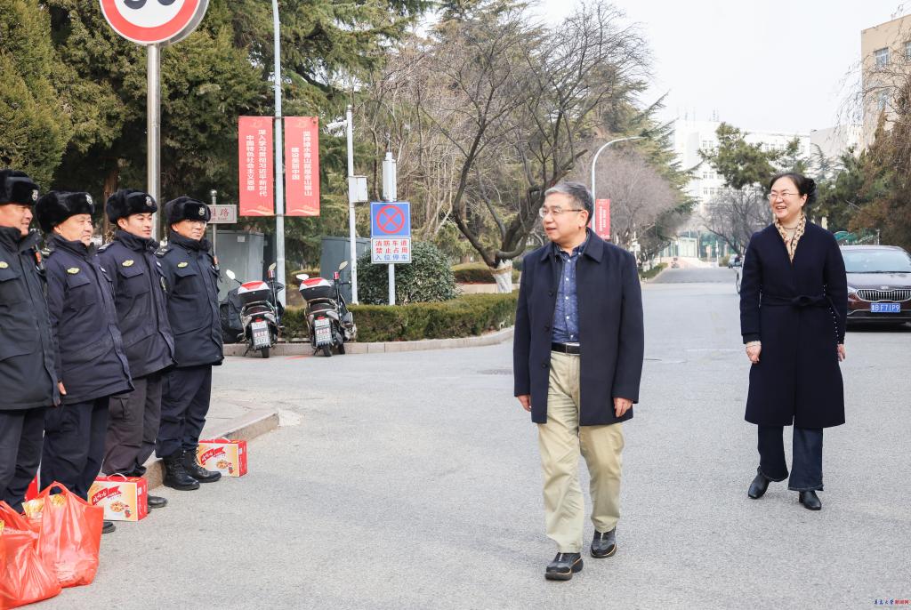 胡金焱一行先后到浮山校區校園警務室、后勤服務大院、國際學術交流中心看望慰問了寒假期間堅守崗位的一線教職工,代表學校向他們致以真摯的問候,為他們送上節日慰問品,并叮囑他們合理安排工作生活,歡度新春佳節。胡金焱詳細了解春節期間各工作崗位的運行情況和保障情況,對假期中校園安全保衛、后勤保障等方面的工作提出明確要求,各相關部門要認真履職盡責,強化安全意識,為師生歡度春節提供堅實保障。