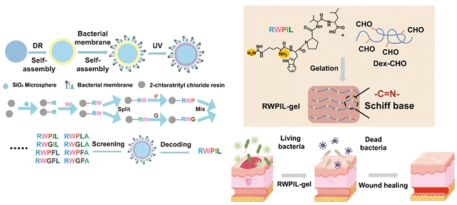 多藥耐藥菌嚴重影響急性皮膚傷口的愈合。本研究利用細胞膜色譜結(jié)合一株一物法多肽庫篩選抗菌肽,并利用抗菌肽和氧化右旋糖酐制備抗菌水凝膠。該水凝膠可有效促進上皮細胞的粘附,在殺滅傷口寄生細菌的同時促進傷口愈合。本研究發(fā)表在ACS Applied Materials & Interfaces上。我校博士生高鳳苑為本文第一作者,生物醫(yī)用材料與工程研究院為第一通訊單位。(全文鏈接:https://doi.org/10.1021/acsami.3c03069)