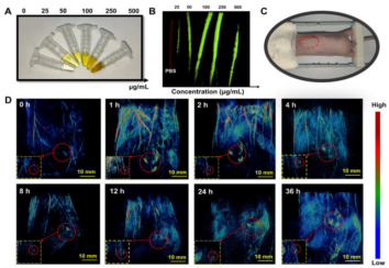 經(jīng)導(dǎo)管動脈栓塞術(shù)在腫瘤介入治療中有巨大作用。本研究報道了一種基于明膠的栓塞微球,具備NIR-II熒光成像和X射線成像雙重成像功能。將DOX裝入微球內(nèi)部,并鍵合凝血酶協(xié)同治療腫瘤。我校博士生高鳳苑與碩士生韓婷婷為第一作者,生物醫(yī)用材料與工程研究院為第一通訊單位。(全文鏈接:https://doi.org/10.1021/acsmaterialslett.3c00164)