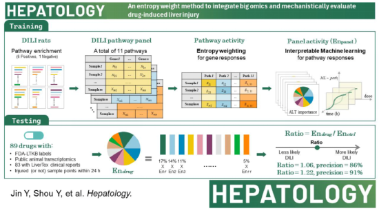 新聞網訊 近期,我校公共衛生學院于典科教授團隊基于系統毒理學研究思路,整合典型肝損傷物質的臨床病例、生化指標、動物組學、分子通路等多維數據,借助數學模型和計算機模型,成功構建了基于機制的肝損傷預測模型,并對模型進行了驗證和優化。相關研究成果以“An entropy weight method to integrate big omics and mechanistically evaluate drug-induced liver injury”為題發表在肝病學頂級期刊Hepatology上(DOI:10.1097/HEP.0000000000000628)。于典科為本文通訊作者,公共衛生學院青年教師靳遠和碩士研究生首瑩清為本文共同第一作者。