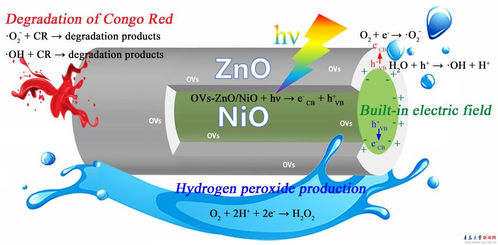 新聞網(wǎng)訊 近日,物理科學(xué)學(xué)院應(yīng)用物理學(xué)專業(yè)2021級本科生武帥宇、袁開震在JCR分區(qū)一區(qū)、中科院2區(qū)TOP期刊《Ceramics International》(IF=5.1)分別以第一作者和共同第一作者身份發(fā)表了題為“ZnO/NiO coaxial heterojunction nanofibers with oxygen vacancies for efficientphotocatalytic Congo red degradation and hydrogen peroxide production”(具有氧空位的ZnO/NiO同軸異質(zhì)結(jié)納米纖維用于高效光催化剛果紅降解和過氧化氫生產(chǎn))的研究論文(Ceramics International, 2024,39636-39644)。我院張紅娣副教授與龍云澤教授為該論文的通訊作者。