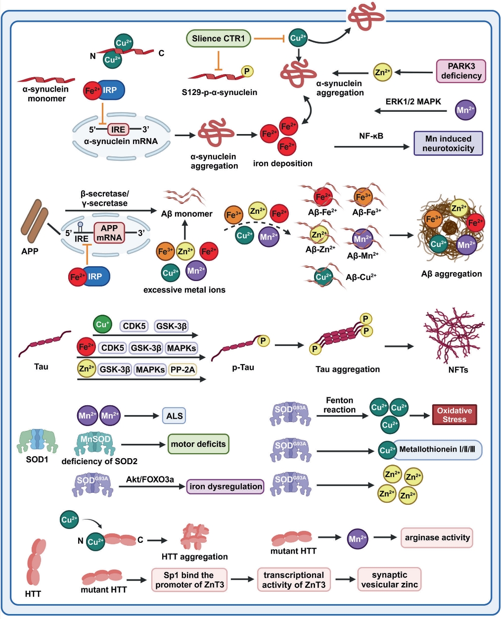 圖為神經(jīng)退行性疾病中的金屬離子穩(wěn)態(tài)失衡與病理性蛋白之間的相互作用