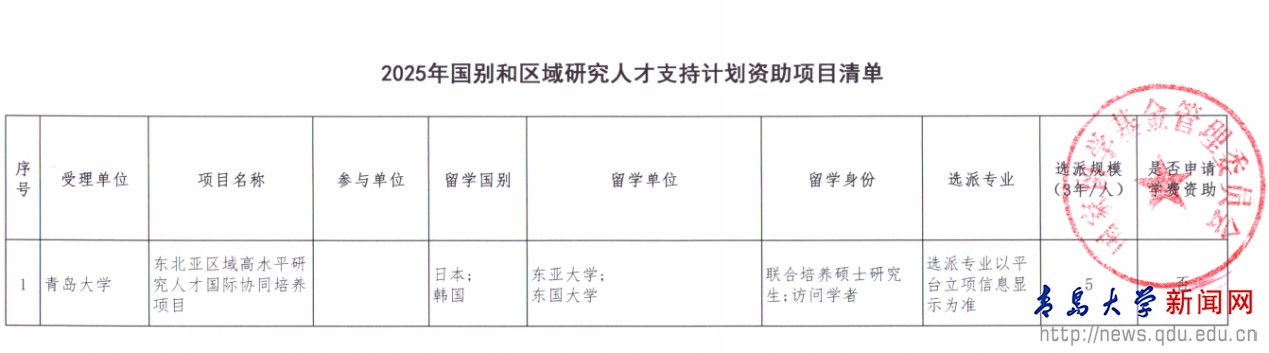 新聞網訊 近日,國家留學基金管理委員會(以下簡稱“國家留基委”)公布了2025年“國別區域研究人才支持計劃”資助項目名單,由我校政治與公共管理學院牽頭申報的“東北亞區域高水平研究人才國際協同培養項目”成功獲批。這是學校首次獲批此類項目,標志著我校區域國別研究人才培養工作取得新突破。