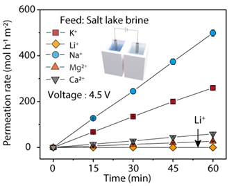 圖2電滲析實現競爭離子的高通量傳輸及鋰離子的完全截留并應用于鹽湖提鋰