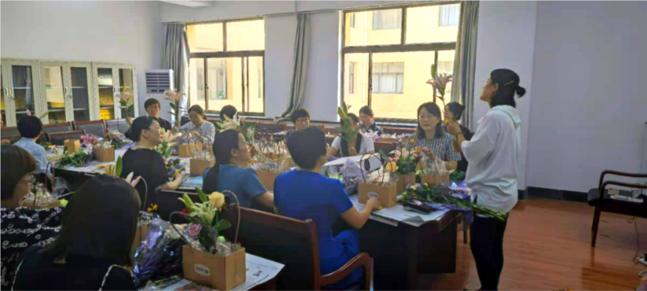 鮮花以形傳神、作品以情動(dòng)人。活動(dòng)結(jié)束后,老師們將自己完成的作品帶回辦公室,為新學(xué)期開學(xué)增添了色彩。此次活動(dòng)將心與美和諧地融為一體,不僅豐富了教職工們的精神文化生活,更是弘揚(yáng)了團(tuán)結(jié)、進(jìn)步、和諧的良好風(fēng)尚,讓大家以陽(yáng)光健康的心態(tài),懷著對(duì)工作生活的熱愛(ài),努力遇見(jiàn)更好的自己。