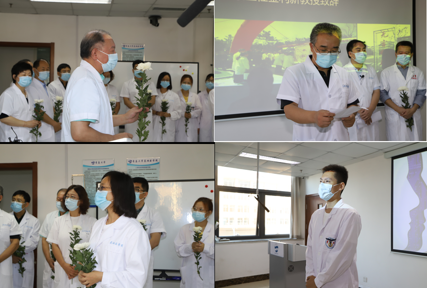 王雙燕老師帶領同學們宣讀了解剖學誓詞。無言良師,授吾醫(yī)理;敬若先賢,臨如活體;正心恭行,追深辨細;德彰術精,修成大醫(yī)”。錚錚誓言,既對無言老師的感恩和敬意,更是對醫(yī)學生們學習奮進的鞭策。