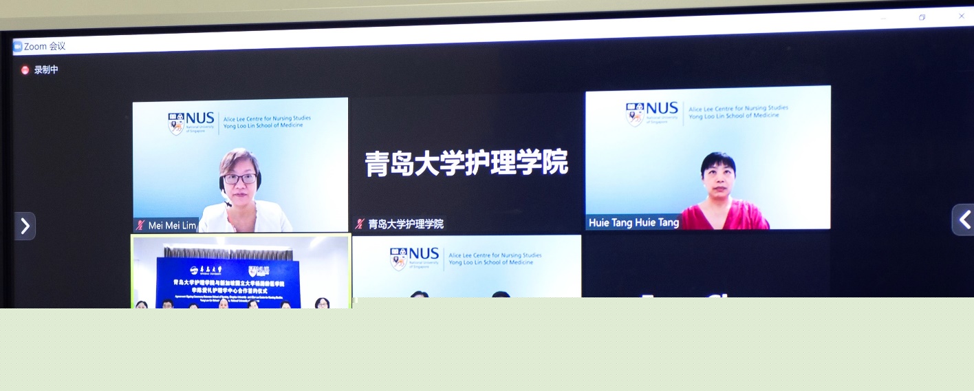 新聞網(wǎng)訊 9月30日上午,護(hù)理學(xué)院與新加坡國(guó)立大學(xué)楊潞齡醫(yī)學(xué)院李陳愛(ài)禮護(hù)理學(xué)中心中外合作辦學(xué)協(xié)議線上簽署儀式舉行。新加坡國(guó)立大學(xué)楊潞齡醫(yī)學(xué)院李陳愛(ài)禮護(hù)理學(xué)中心院長(zhǎng)洪娘金、辦公室主任周文濤、副主任林媚媚、辦公室經(jīng)理唐慧娥,青島大學(xué)護(hù)理學(xué)院黨委書記楊成中、院長(zhǎng)王愛(ài)敏、副書記黃美萍、副院長(zhǎng)楊富國(guó)、院長(zhǎng)助理?xiàng)铥悺⒒A(chǔ)護(hù)理教研室主任姜云霞、教師代表宋玉婷副教授出席本次簽約儀式,簽約儀式由青島大學(xué)護(hù)理學(xué)院院長(zhǎng)助理?xiàng)铥惡托路叫录悠聡?guó)立大學(xué)楊潞齡醫(yī)學(xué)院李陳愛(ài)禮護(hù)理學(xué)中心唐慧娥共同主持。