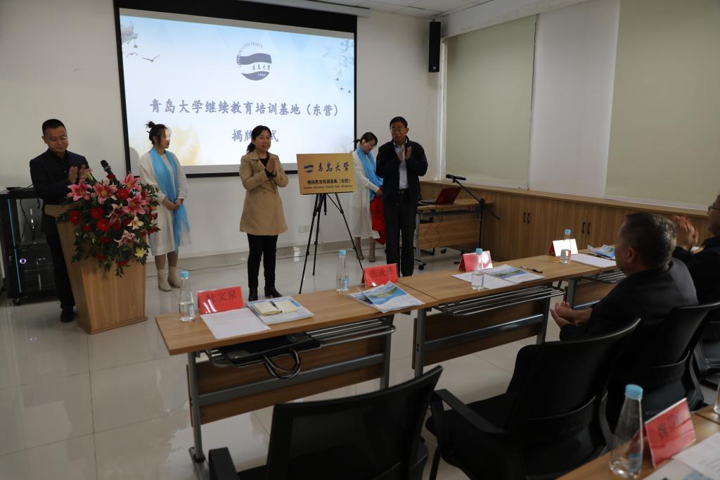 繼續教育培訓基地(東營)由青島大學繼續教育學院和東營黃河口研學服務中心聯合共建,旨在共同開展各類繼續教育、中小學生研修、1+x職業技能人才培養和舉辦企業總裁班等活動。基地建設得到了山東省黃河三角洲可持續發展研究院、東營市東營區、教育局、文化和旅游局和青島大學東營校友會等的大力支持。