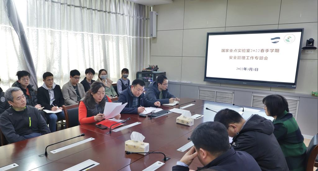 在實驗室安全工作專題會上,郝曉麗首先對安全檢查情況進行了總結,對發現的個別課題組存在安全日巡查記錄不完備等安全隱患提出了整改要求。接著,布置了國家重點實驗室春季學期安全工作要點,一是要進一步提高安全意識和責任意識,安全第一、警鐘長鳴;二是要嚴格遵守學校疫情防控要求,嚴格來訪人員審批和登記;三是要落實“三到位”,確保實驗室安全,即師生安全教育到位、安全管理到位和學生管理到位。葉萬能老師結合學校、國家重點實驗室相關管理辦法,就如何從實驗室安全教育、安全管理和學生管理三方面落實好實驗室安全工作進行了詳細說明。