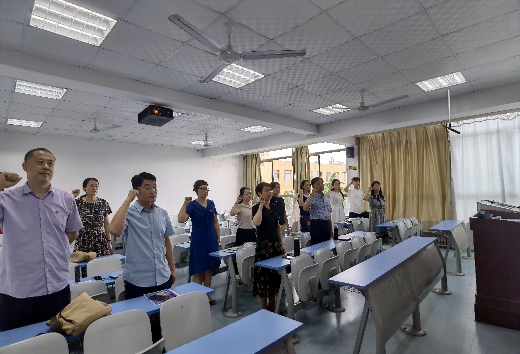 為加強師生支部共建,為支部持續注入青年人才及優秀學生的新鮮力量,增強支部的戰斗力和凝聚力,7月1日上午,外語學院教工第二黨支部與學生第三黨支部于博文樓312會議室共慶七一,接收新黨員,同過第一個“政治生日”。教工第二黨支部接收楊昊、馬一凡兩位老師為中共預備黨員,學生第三黨支部接收程媛媛等碩士生9人、孟婷婷等本科生37人為中共預備黨員。
