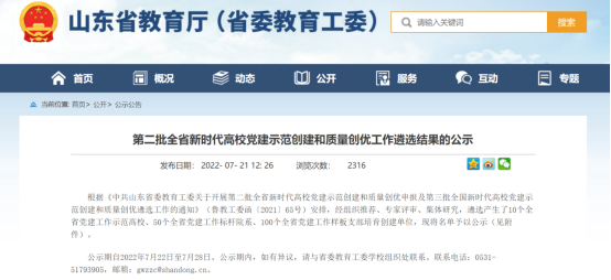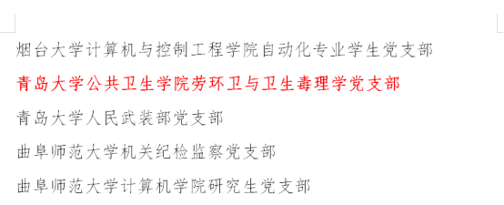 新聞網訊 近日,中共山東省委教育工委公布了第二批全省新時代高校黨建示范創建和質量創優工作(以下簡稱黨建“雙創”工作)遴選結果,公共衛生學院黨委勞環衛與衛生毒理學黨支部入選黨建工作樣板支部培育創建單位。