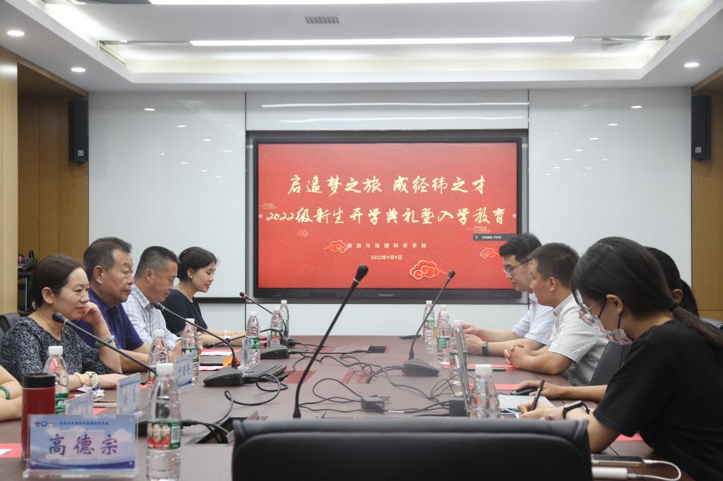 新聞網訊 9月9日,旅游與地理科學學院于浮山校區科技研發中心A座509室舉行“啟追夢之旅,成經緯之才”2022級新生開學典禮暨入學教育大會。學院黨委書記劉善東、院長肖建紅和其他黨政領導干部、部分教師代表、校友代表、老生代表以及2022級全體新生及新生家長通過線上與線下相結合的方式參加了本次大會。大會由學院黨委副書記于苗主持。