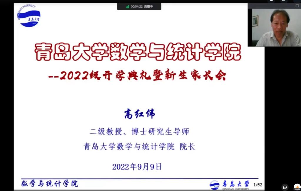邁進青大,共筑未來——2022級本科開學典禮暨新生家長會。9月9日晚,學院舉辦線上2022級開學典禮暨新生家長會。院長高紅偉強調了目前國家對于數學等基礎學科的重視并著重從數學學科現狀、學科發展和學院概況三方面全面對學院的院系建設展開介紹。隨后,魏小平并從確立目標、如何度過大學等幾個方面為新生做開學第一課。會議點贊高達八萬余次,新生與家長熱情高漲。