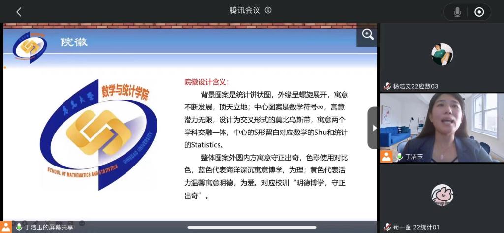 踔厲奮發,未來可期——2022級新生入學教育大會。9月7日下午,學院召開線上新生入學教育大會。會議學院副院長由丁潔玉主講,全體2022級新生線上參會。丁潔玉介紹了院徽、校訓含義,隨后就《青島大學學分制管理規定》、人才培養方案等四份文件作出解讀。本次會議讓2022級新生對學校學院以及專業設置有了初步了解,讓他們可以更加堅定的邁出自己的大學第一步。