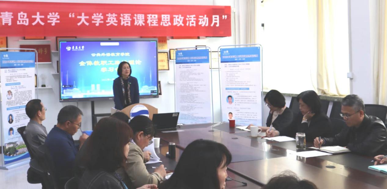 新聞網(wǎng)訊 4月20日下午,公共外語(yǔ)教育學(xué)院在睿思樓202會(huì)議室,通過(guò)線上線下相結(jié)合的方式召開全體教職工政治理論學(xué)習(xí)會(huì),落實(shí)學(xué)習(xí)貫徹習(xí)近平新時(shí)代中國(guó)特色社會(huì)主義思想主題教育工作要求。學(xué)院黨委書記劉海榮主持會(huì)議。