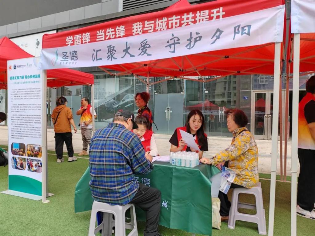 公益活動現場來自圣德醫養康復集團、華夏眼科及優諾口腔的醫護人員為老年人們進行了血壓血糖測量、內科及老年病診療、眼疾篩查等義診項目,醫護人員以及學生志愿者的志愿服務受到了老年群體的熱烈歡迎。