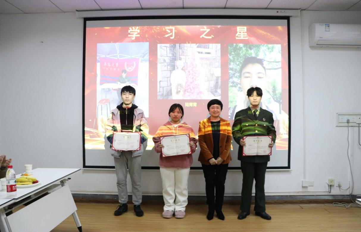 會上,王春光為優秀學生頒發奮進之星、學習之星獲獎證書,張新柏老為優秀學生頒發文體之星證書。