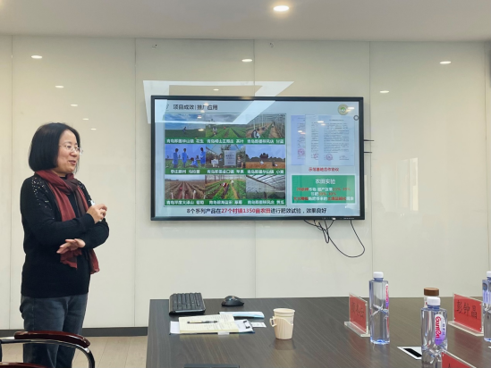 項目負責人環境科學與工程學院顏冬云教授匯報了糖醇螯合系列有機液體肥技術,以案例形式展示了系列肥料的推廣應用成果,并與政企兩方就技術成熟度、產業化前景、合作方式等方面進行了深入探討。