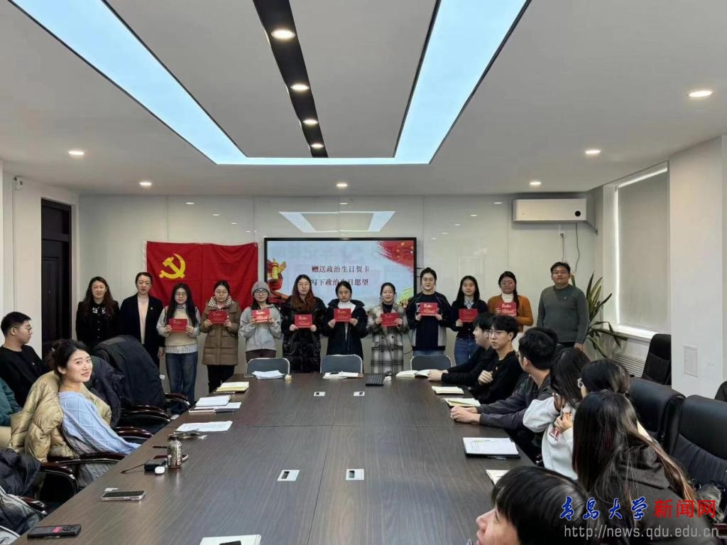 活動中,全體黨員重溫入黨誓詞。院黨委副書記孫竹媛為新加入黨組織的黨員贈送政治生日賀卡,各位黨員也莊重寫下自己的政治生日愿望并依次分享入黨初心以及感悟,全體黨員集體學(xué)習(xí)了習(xí)近平總書記依法治國重要講話精神并分享了學(xué)習(xí)體會。