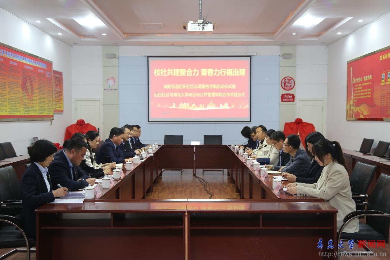 雙方就在后田社區建立青島大學政治與公共管理學院本科生與研究生實習實訓基地達成一致,在后田社區掛牌“青島大學政治與公共管理學院實踐教學基地”“青島社會工作學院實踐教學基地”。同時,雙方將共同推進后田社區志愿服務學院、社會工作學院建設,制定后田社區志愿服務學院、社會工作學院發展規劃,開展社區黨員干部、社區工作者培訓,組織課題研究與智庫建設等。