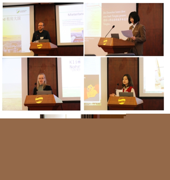 隨后,研學(xué)團(tuán)學(xué)生與青大德語(yǔ)系學(xué)子分別進(jìn)行學(xué)術(shù)匯報(bào)與討論交流。拜羅伊特大學(xué)地理學(xué)院碩士研究生艾格特(Tom Eggert)、海瑟爾(Sveja Ressel)、青島大學(xué)外語(yǔ)學(xué)院德語(yǔ)系本科三年級(jí)學(xué)生王筱彤、許筱彤分別以“租房大國(guó)德國(guó)”“氣候變化與糧食生產(chǎn)”“尋找青島的歷史印記”“海爾集團(tuán)的創(chuàng)新發(fā)展”為題進(jìn)行匯報(bào)交流,中德雙方與會(huì)成員進(jìn)行了熱烈的討論。漢斯·賽德?tīng)柣饡?huì)山東代表處總代表克勞斯博士(Dr. Michael KLAUS)對(duì)本次學(xué)術(shù)交流座談會(huì)進(jìn)行總結(jié)。他對(duì)四位同學(xué)所作報(bào)告內(nèi)容進(jìn)行了概括和點(diǎn)評(píng),強(qiáng)調(diào)了此次中德跨文化交流活動(dòng)的重要意義,指出只有通過(guò)跨文化對(duì)話,才能加深中德雙方理解,并進(jìn)而實(shí)現(xiàn)文明互鑒。