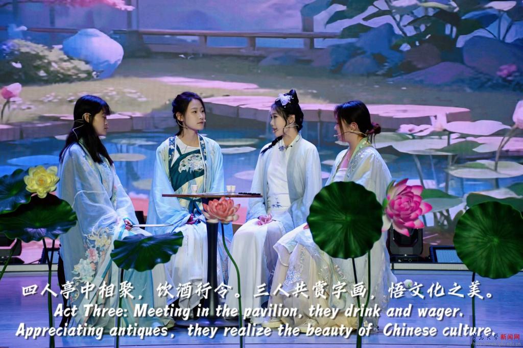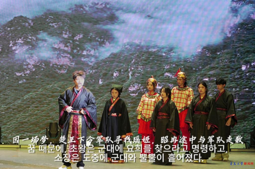 新聞網訊 4月23日晚,外語學院第二十六屆外文短劇大賽在青大劇院隆重舉行。本次大賽以“譯國學經典,聚中華之美”為主題,旨在通過多語種演繹,深入挖掘傳統文化的奧秘,展現傳承傳統文化的力量。