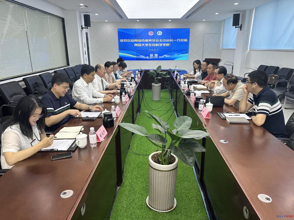 會上,薛冰首先對王中會長一行表示歡迎,對青島市康養學會一直致力于島城康養生態鏈的發展、積極推動康養事業與康養產業的高質量發展表示贊賞。薛冰表示,學院高度重視與學會的合作交流,雙方將以此為契機,發揮各自特色優勢,共同推動島城大健康產業、生命科學領域的交流與密切合作。院長許元紅介紹了青島大學生命科學學院的歷史沿革、辦學特色和近年來在人才隊伍、教學科研、學科建設及服務社會等方面取得的突出成績。她表示,學院目前在疾病早篩、高效農業以及功能食品開發等主要研究領域與康養產業高度契合,學院愿與學會一道致力于公益事業,配合學會在生源雙向輸出、學術雙向融合、專家資源全面共享等做好工作,共同推動青島市康養事業與產業發展。