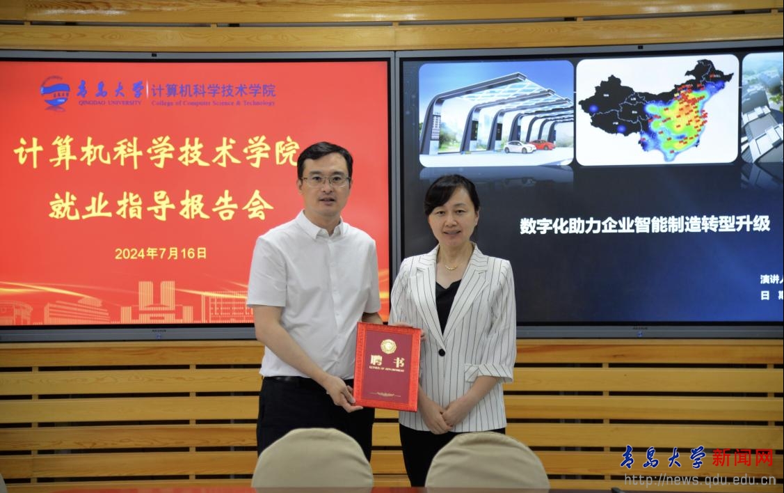 新聞網(wǎng)訊 為進一步推進2025屆畢業(yè)生就業(yè)指導工作,引導學生樹立正確的就業(yè)觀念,提高就業(yè)積極主動性。7月16日下午,計算機科學技術學院在博知樓510會議室舉行就業(yè)指導報告會。青島特銳德電氣股份有限公司副總裁、2001級校友李廣智應邀作題為《數(shù)字化助力企業(yè)智能制造轉型升級》的報告。院黨委書記潘秋鴻參加會議,會議由院黨委副書記周鵬主持。