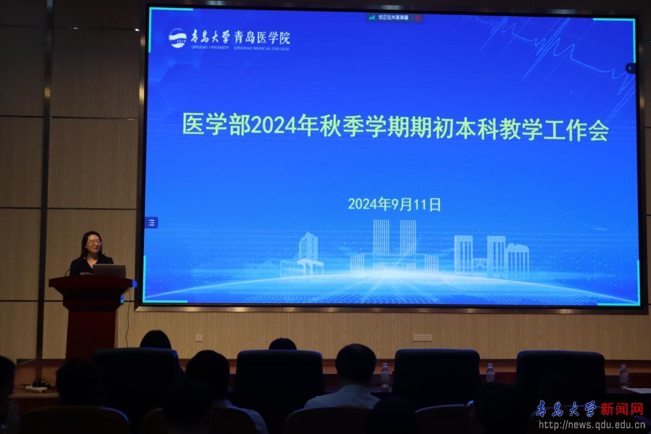 新聞網(wǎng)訊 9月11日下午,醫(yī)學(xué)部在浩園醫(yī)學(xué)綜合樓B座104學(xué)術(shù)報(bào)告廳召開2024年秋季學(xué)期期初本科教學(xué)工作會(huì)議。醫(yī)學(xué)部各學(xué)院分管教學(xué)院長(zhǎng)、分管學(xué)生工作書記、教科辦主任,各附屬醫(yī)院、教學(xué)醫(yī)院分管教學(xué)院長(zhǎng)、教育科(處)負(fù)責(zé)人,臨床醫(yī)學(xué)系、醫(yī)學(xué)檢驗(yàn)學(xué)系、醫(yī)學(xué)影像學(xué)系主任、臨床技能學(xué)實(shí)驗(yàn)中心主任,各“器官-系統(tǒng)”整合課程負(fù)責(zé)人、學(xué)工辦主任、各年級(jí)本科輔導(dǎo)員及本科辦全體人員參加會(huì)議,非駐青醫(yī)院相關(guān)人員線上同步參會(huì)。會(huì)議由醫(yī)學(xué)部副部長(zhǎng)李冰主持。