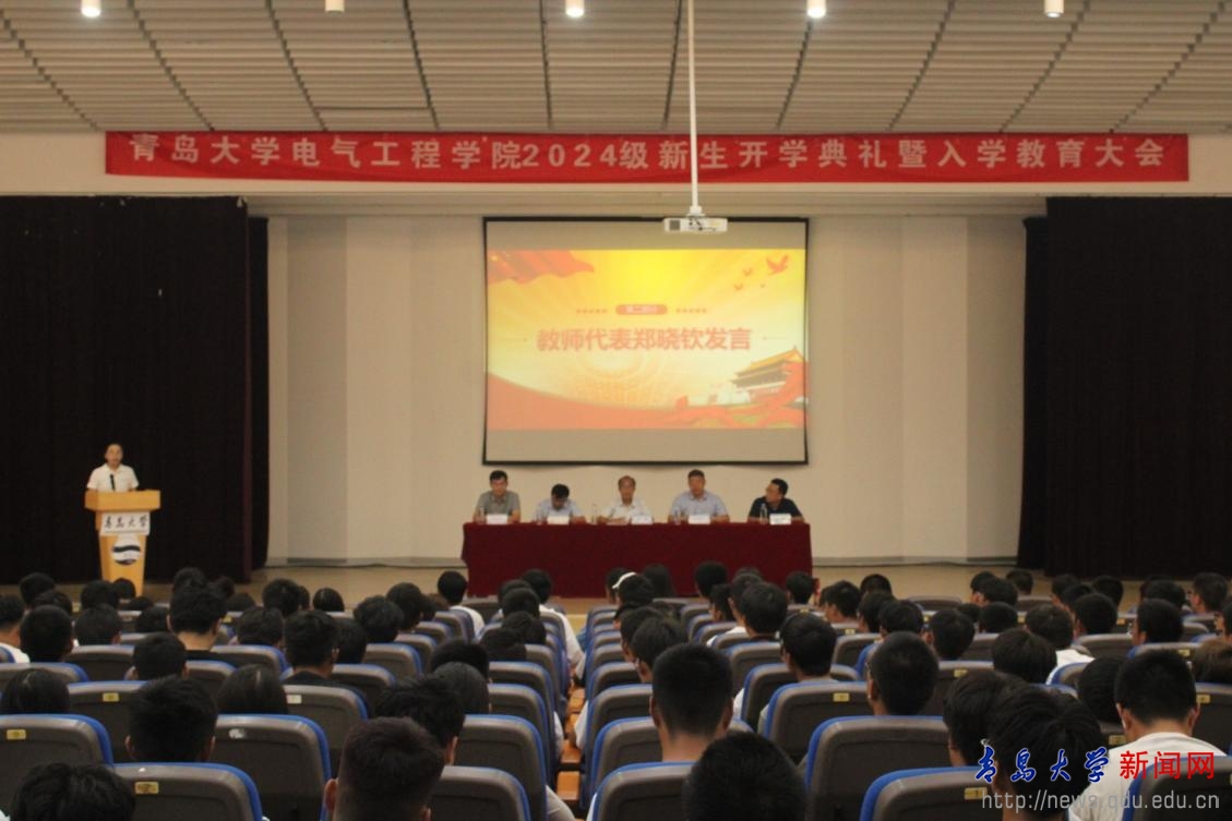 首先,院長張智晟致歡迎辭,他代表學院全體師生向新生表示熱烈的歡迎,并介紹了青島大學的辦學歷史和電氣工程學院的發展歷程,學院教師隊伍及科研成果等概況。同時在與同學們的交流過程中也提出期望:要做一個精神貴族,成為一個品德高尚的人,要心懷利他之心,實踐利他之舉,不斷為社會做出貢獻,回饋時代。