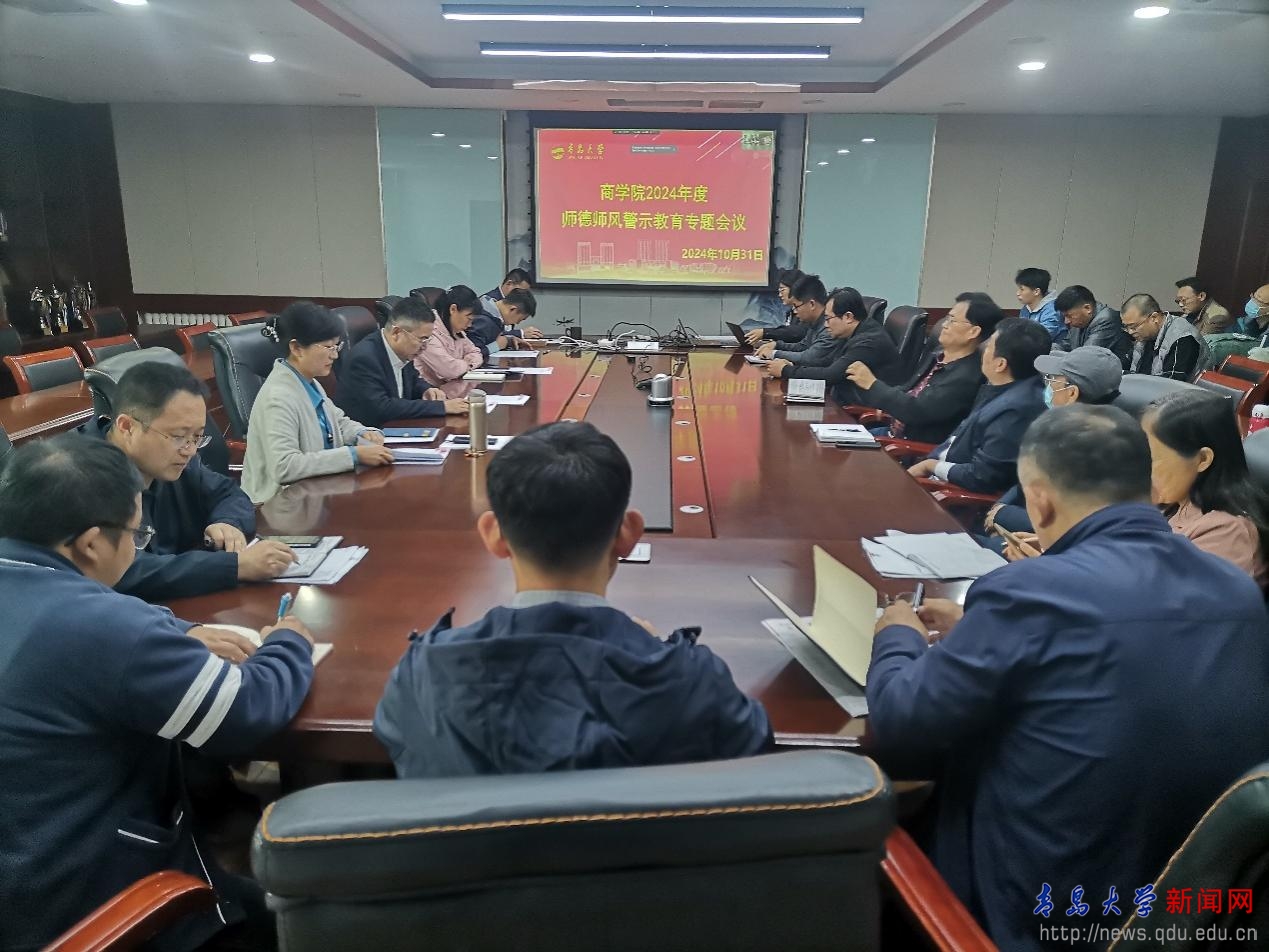 新聞網(wǎng)訊 10月31日,商學(xué)院在310會(huì)議室召開商學(xué)院“傳承教育家精神 鑄就高尚師德”主題教育暨2024年度師德師風(fēng)警示專題教育,全院教職員工線上線下同步參會(huì),院黨委書記王慶金主持會(huì)議。