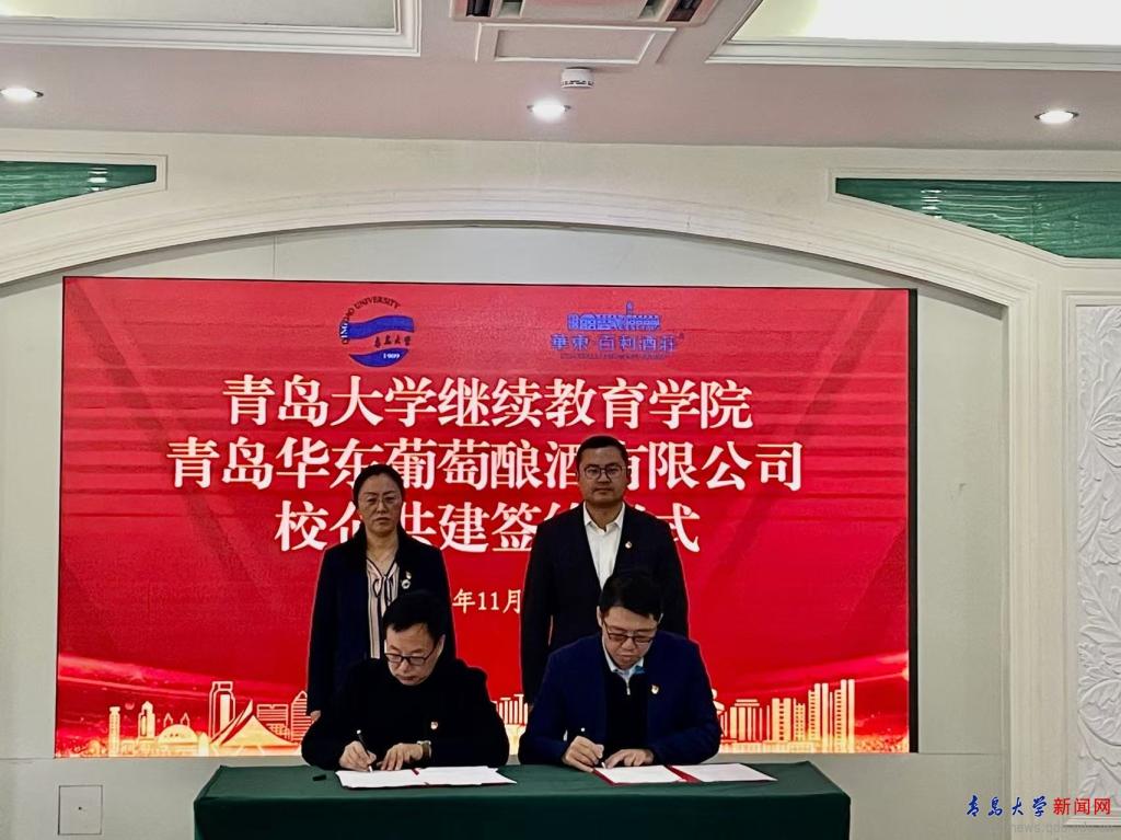 耿寶福、嵇可琳簽署了《青島大學與青島華東葡萄釀酒有限公司教育培訓基地合作協議書》,張燕、魏帥強為青島大學—青島華東葡萄釀酒有限公司教育培訓基地揭牌。應用技術學院教工第二黨支部書記初秀榮、青島華東葡萄釀酒有限公司第一黨支部書記劉春生簽署了《黨建共建協議書》。