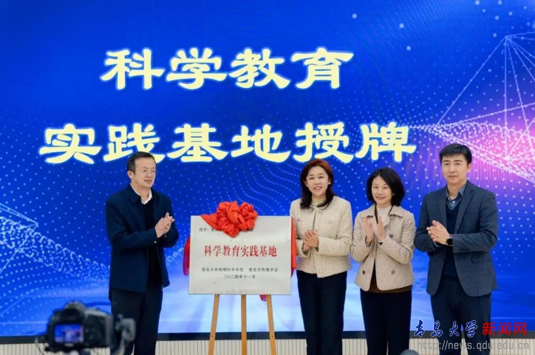 在青島嘉峪關學校教育集團科創節啟動儀式上,郝偉致辭,他介紹了青島大學應用物理國家級實驗教學中心相關情況,表示學院將會發揮好自身優勢,積極為學校提供優質的科學教育資源,助力學生科學思維和創新基因的培育和成長。隨后,物理科學學院與青島嘉峪關學校簽署科學教育協同育人合作協議,并在嘉峪關小學成立青島大學物理科學學院“科學教育實踐基地”,學院教師被聘為青島嘉峪關學校教育集團少年科學院導師。