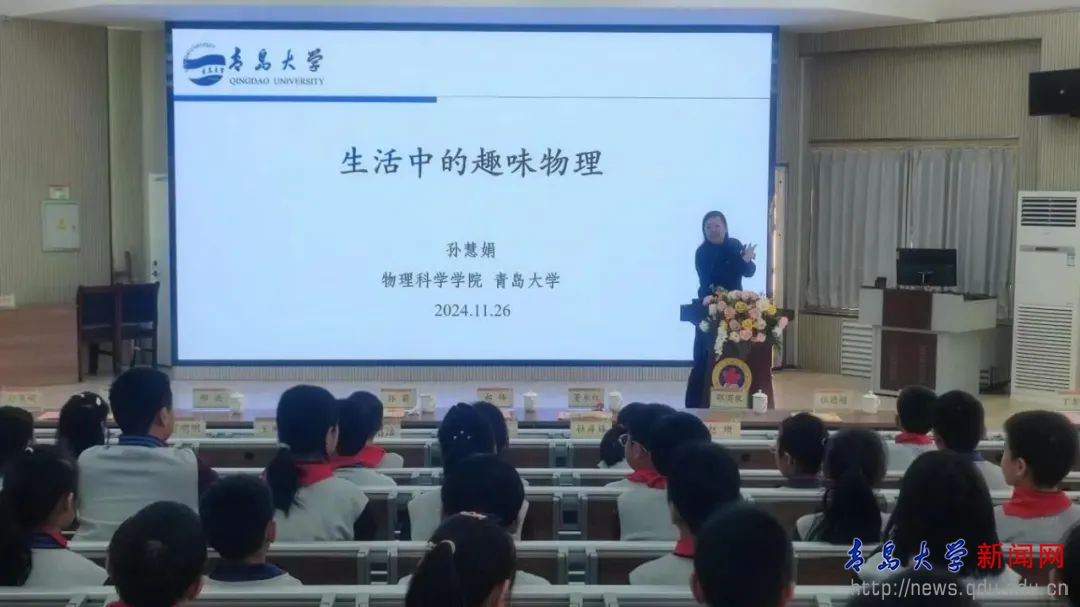 啟動儀式結束后,物理科學學院應用物理系黨支部書記孫慧娟博士為青島嘉峪關學校教育集團學校的學生作《生活中的趣味物理》的科普報告,受到同學們的熱烈歡迎。