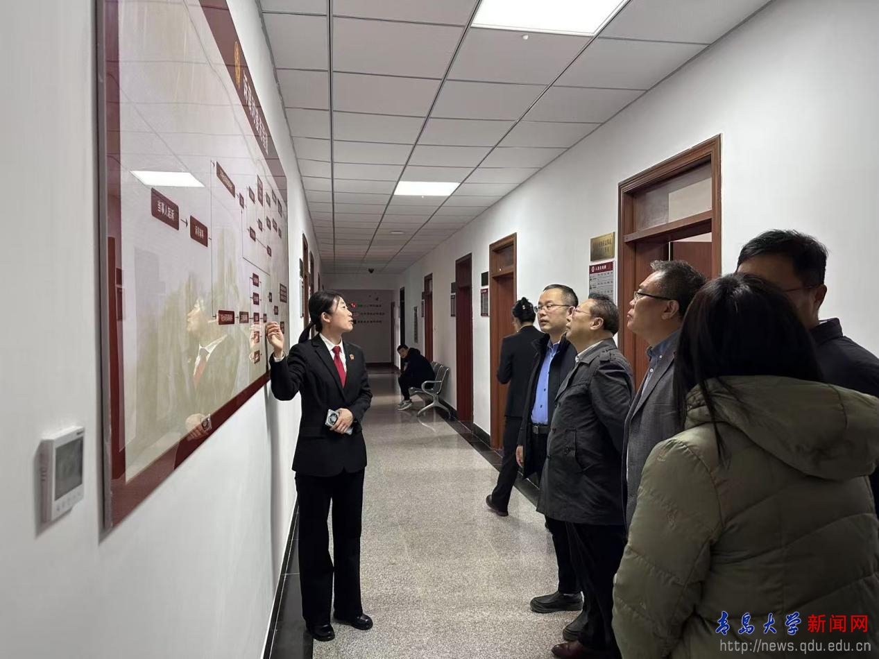 李建新介紹了法學院的學科建設、人才培養模式以及科研成果,并表示此次調研旨在傾聽司法實務部門的聲音,進一步優化法學教育課程設置,提升學生的實踐能力和綜合素質,使法學教育更好地服務于法治社會建設。他強調,法學院將積極探索與司法局在實習實訓基地建設、實務專家進課堂、科研項目合作等方面的深度合作,實現互利共贏。蔡穎雯介紹了青島大學涉外法治人才協同培養創新基地的建設情況,提出要整合高校專家智庫與地方法律服務資源,加強涉外法治領域的理論研究與實務討論。王瀚結合習近平總書記關于涉外法治工作的重要論述,指出目前法治人才培養面臨的困境,并提出可行性建議。