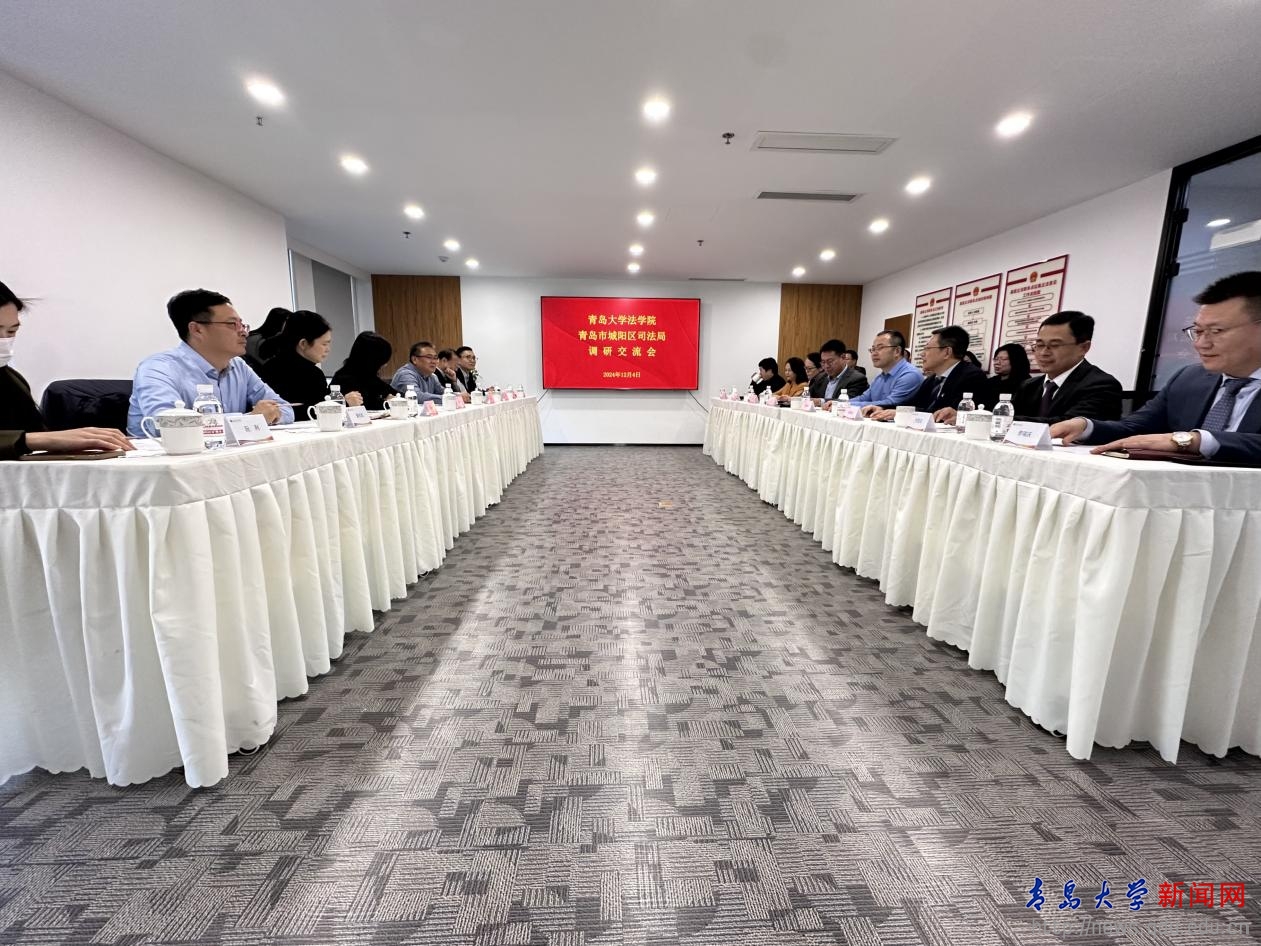 在參觀城陽區人民法院商事調解中心、山東眾成清泰(城陽)律師事務所后,法學院與城陽區司法局、法律服務機構進行了調研座談交流會議。