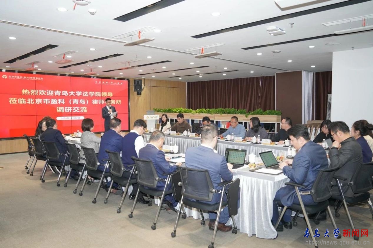 新聞網訊 為深化高校與實務部門雙向交流,拓展學生實習實訓和就業基地建設,近日,法學院黨委書記李建新一行到北京盈科(青島)律師事務所(以下簡稱“盈科青島所”)走訪調研。盈科青島所執行主任于靖、所黨總支書記黃永超、監事會主任查儉、高級合伙人馬國慶、高級合伙人郝興利、高級合伙人伊廷科、在盈科青島所兼職的法學院教師、在盈科青島所工作的法學院畢業生代表以及盈科青島所青年律師代表參加調研活動。
