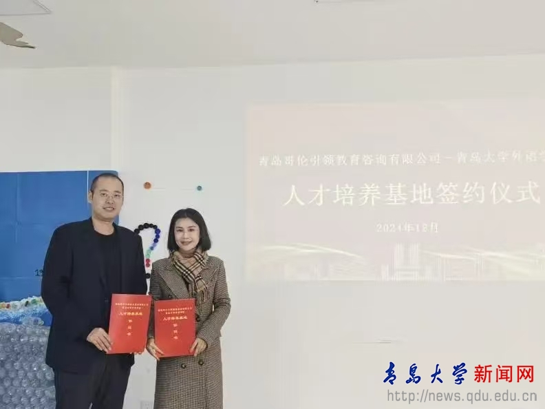 新聞網訊 為落實需求導向的育人理念,強化外語學院高質量就業,準確掌握企業用人需求,切實提升人才培養質量,12月13日外語學院和青島哥倫引領教育咨詢有限公司開展“人才培養基地”合約書簽訂暨校外就業導師聘任儀式。青島哥倫引領教育咨詢有限公司總經理張福亮一行、外語學院黨委副書記于苗、英語系副主任王昕、學工辦主任溫凌鶴、團委副書記張淑敏及畢業生代表參會。