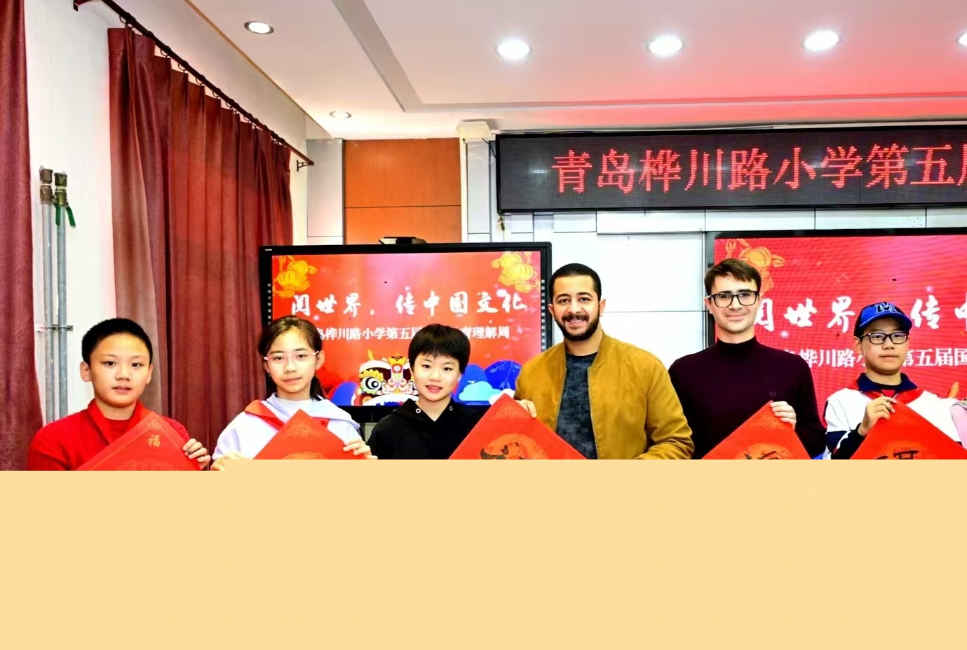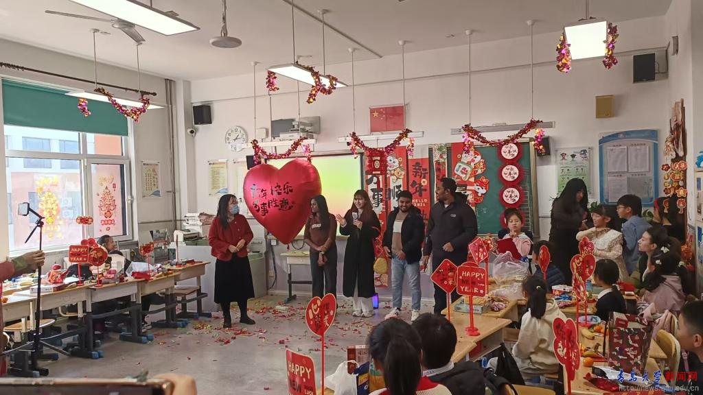 來(lái)自越南、印度、孟加拉國(guó)的4名留學(xué)生參加了青島市中外人文交流實(shí)驗(yàn)學(xué)校--嶗山區(qū)麥島路小學(xué)三年級(jí)元旦文藝聯(lián)歡暨國(guó)際理解日活動(dòng),除了觀看節(jié)目展演以外,還與小學(xué)生們共同演唱迎新年英文歌曲,共同迎接新年的到來(lái)。