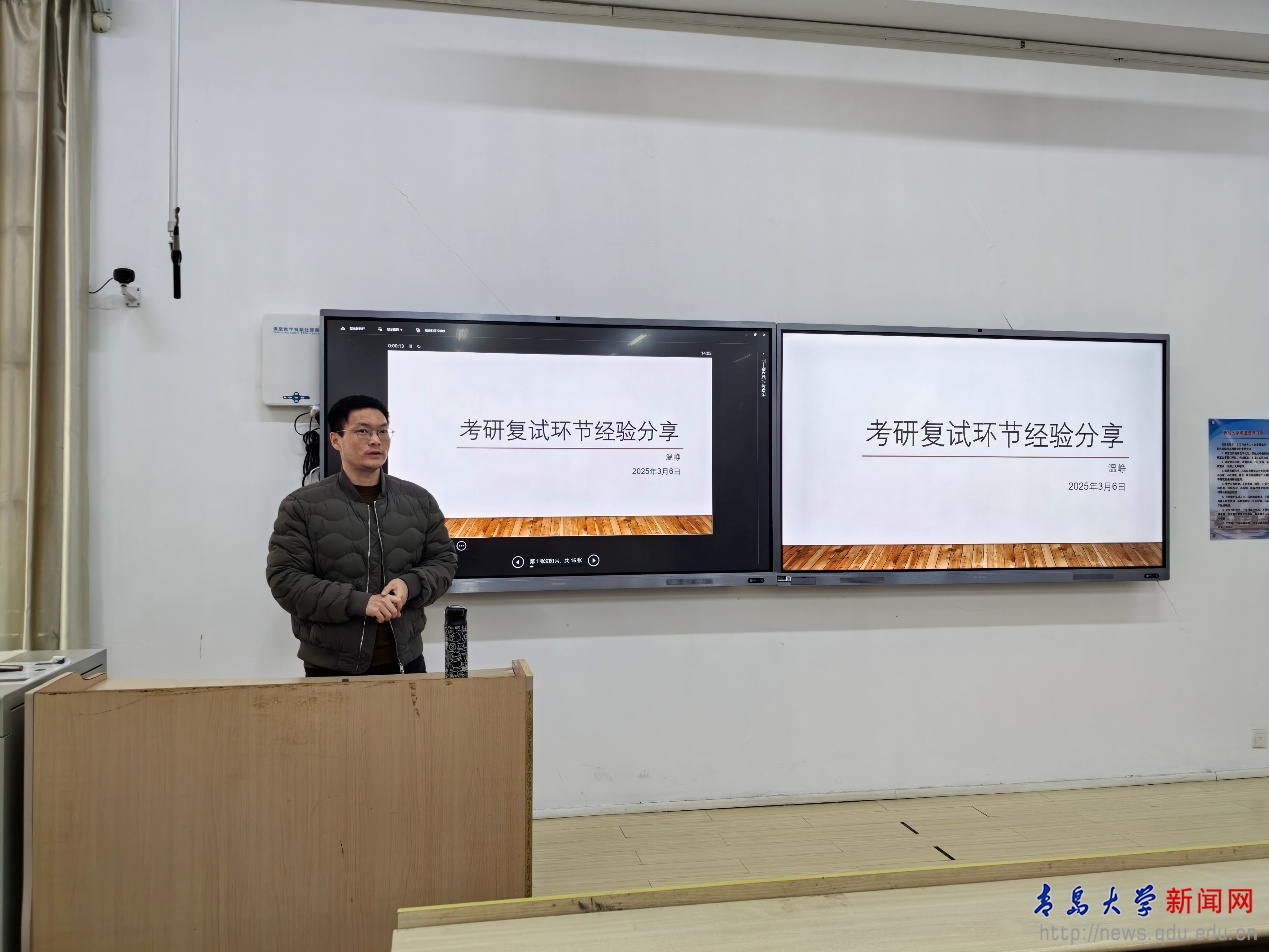 新聞網訊 近日,電子信息學院在敏思樓104教室舉辦2025屆畢業生考研復試調劑經驗交流會。2021級考研畢業生參加分享會。交流會由溫崢教授主講,院黨委副書記劉孝群主持交流會。