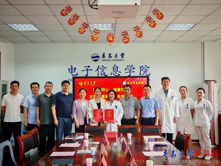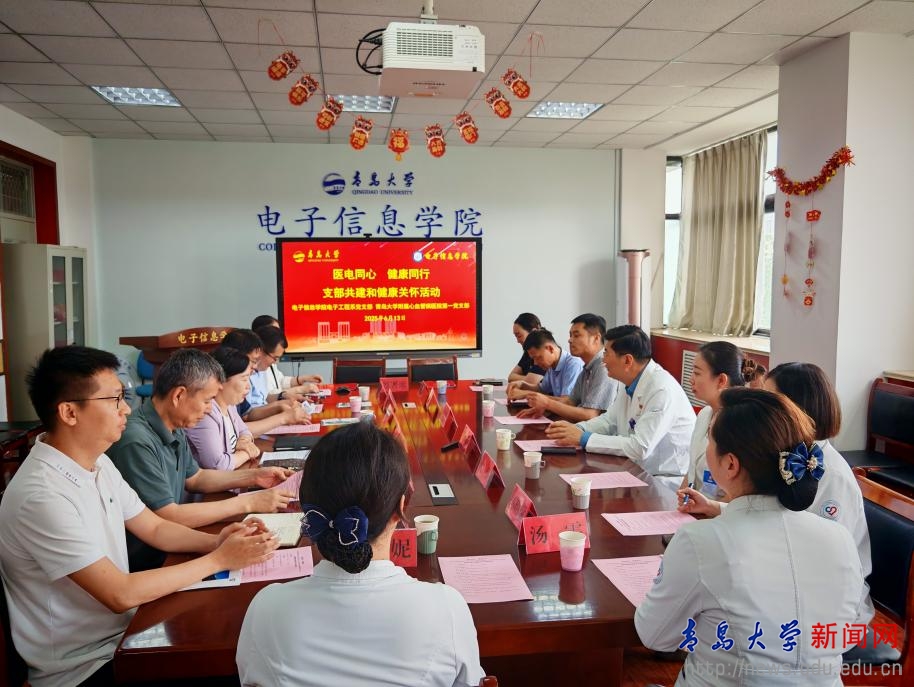 新聞網訊 6月13日下午,在青島大學浮山校區誠思樓407會議室,電子信息學院與附屬心血管病醫院開展黨建共建和健康服務活動。附屬心血管醫院劉清泉書記、褚現明副院長等醫務人員和電子信息學院黨委書記孫麗娜、院長李山東等教師40余人參加了相關活動。活動由青島大學電子信息學院黨委書記孫麗娜主持。
